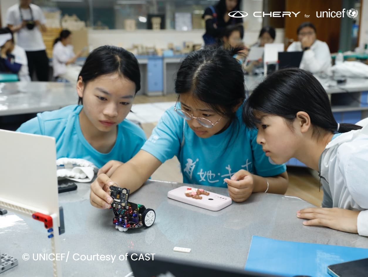 In China, Chery supports UNICEF on initiatives to improve ECD, promote STEM education, and provide more inclusive environments for children with disabilities or special learning needs. One impactful initiative is the STEM for Rural Adolescents project, which has encouraged around 530,000 adolescents, including around 265,000 girls, to participate in STEM extra-curricular activities through science camps, mentorship, and hands-on learning experiences.